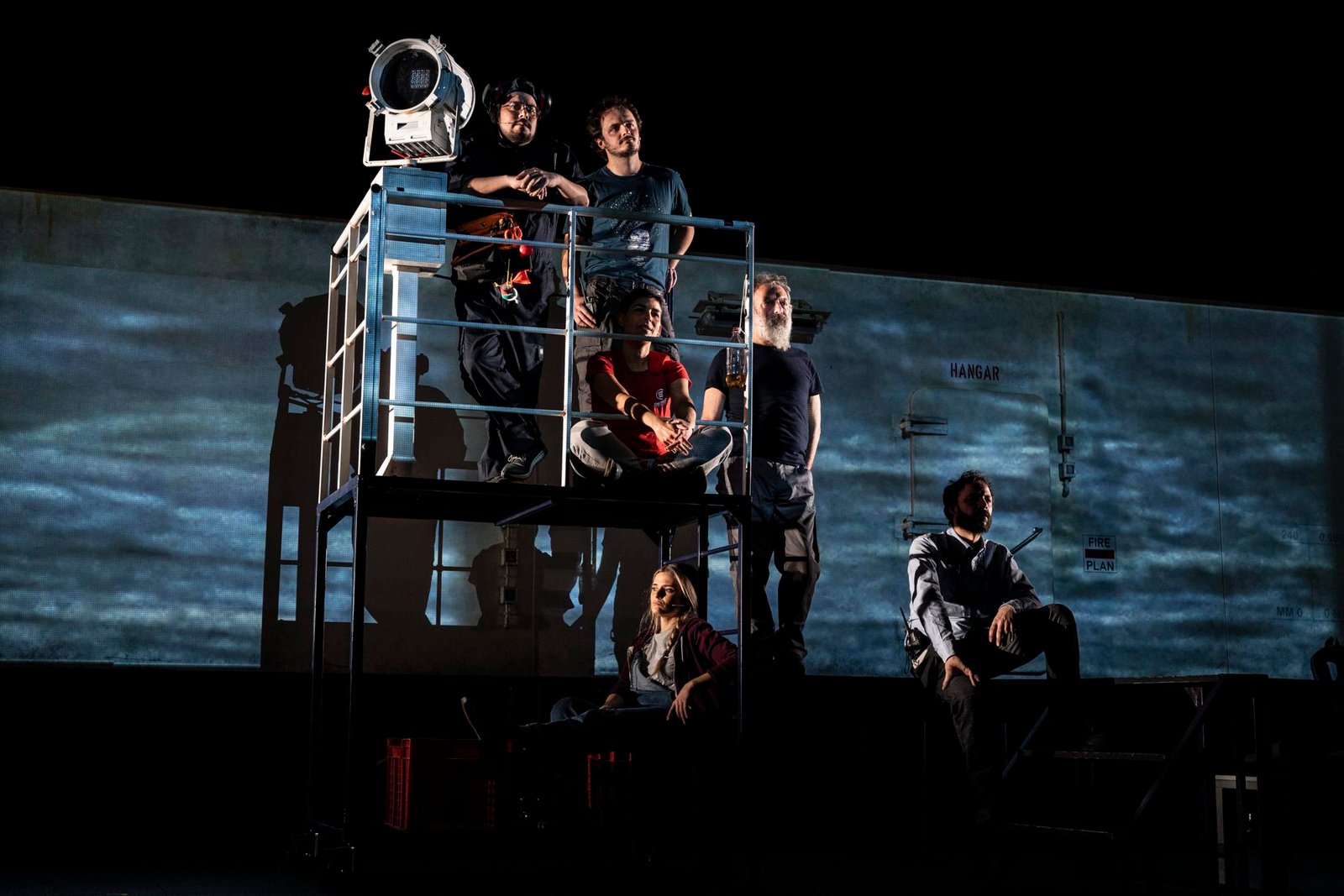 Borghesi a volte si mischia con l’equipaggio, raccontando la propria esperienza e le sensazioni provate, altre invece agisce da regista, creando momenti meta-teatrali stranianti e stridenti rispetto alla durezza delicata della messa in scena generale. Ma questa presenza estranea serve proprio a ricordare questo: si tratta di una messa in scena. Certo, ci sono persone che hanno vissuto e vivono tutt’ora il dramma delle rotte mediterranee sulla propria pelle. Certo, le storie riportate sono storie vere. Ma il tutto è inserito in una cornice narrativa teatrale, costruita, ed è fondamentale ricordarlo. Non è una conferenza, non è una chiacchierata con i protagonisti di queste storie, ma è il ritorno al teatro, all’arte nella sua forma primordiale: il racconto della realtà.