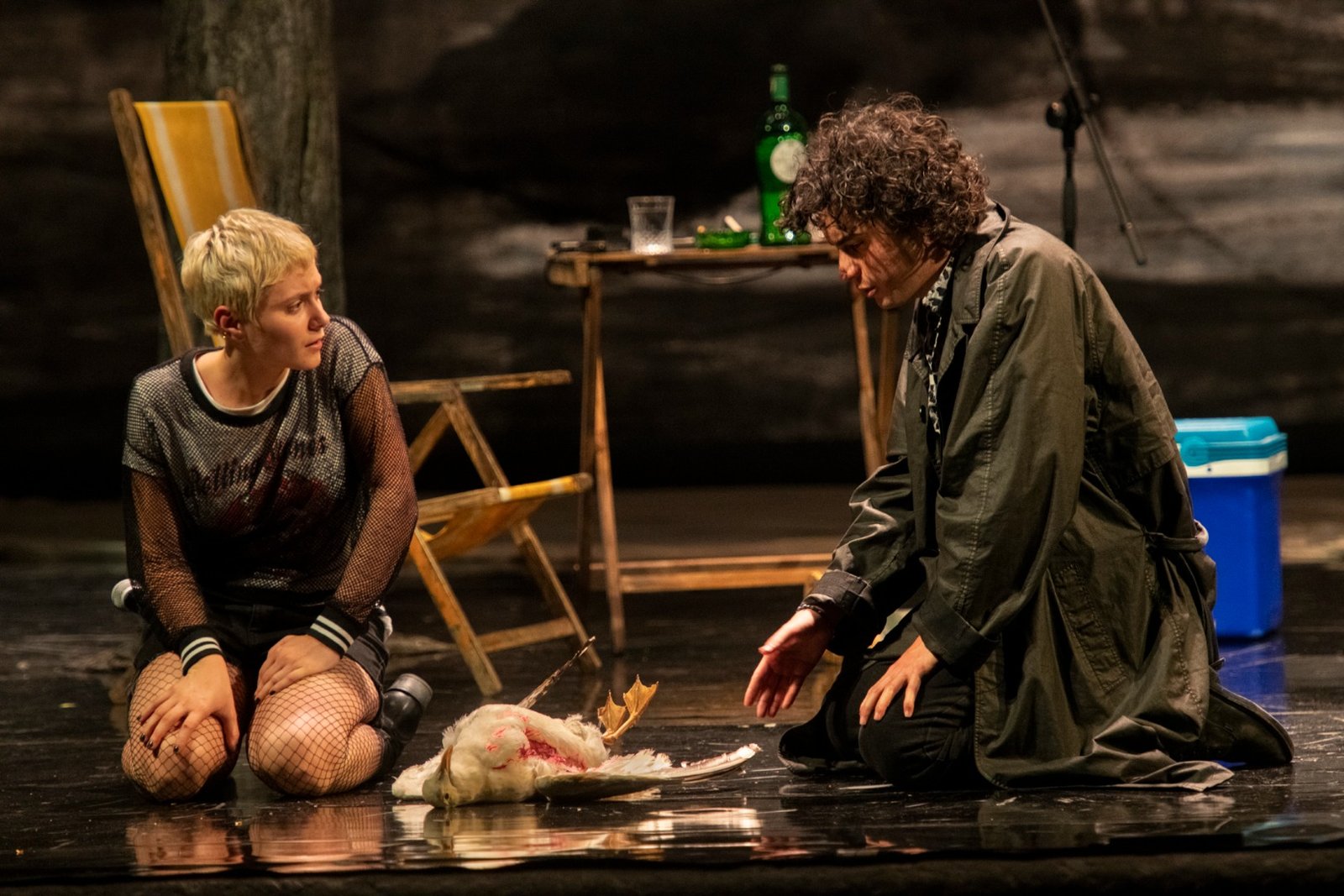 Dramma scritto nel 1895, la storia de Il gabbiano è nota e classica: un gruppo di persone si ritrova a trascorrere del tempo insieme in una villa in riva a un lago, dove si scambiano opinioni, pensieri e bugie, scoprendo e rivelando man mano la propria umanità imperfetta. Il testo, riadattato in tre atti, vede susseguirsi una serie di personaggi e situazioni al limite tra il drammatico e il grottesco. Čechov sembra intenzionato a presentare in questo modo un’allegoria dell’intera umanità che, riunita e messa a confronto, non può far altro che soccombere al proprio assurdo destino. Nulla va come dovrebbe e come i protagonisti vorrebbero, ma è chiaro, durante lo svolgimento dello spettacolo, che gli unici responsabili di questo fallimento sono loro stessi e la loro «inadeguatezza nei confronti del mondo», come sottolinea Dini stesso.
