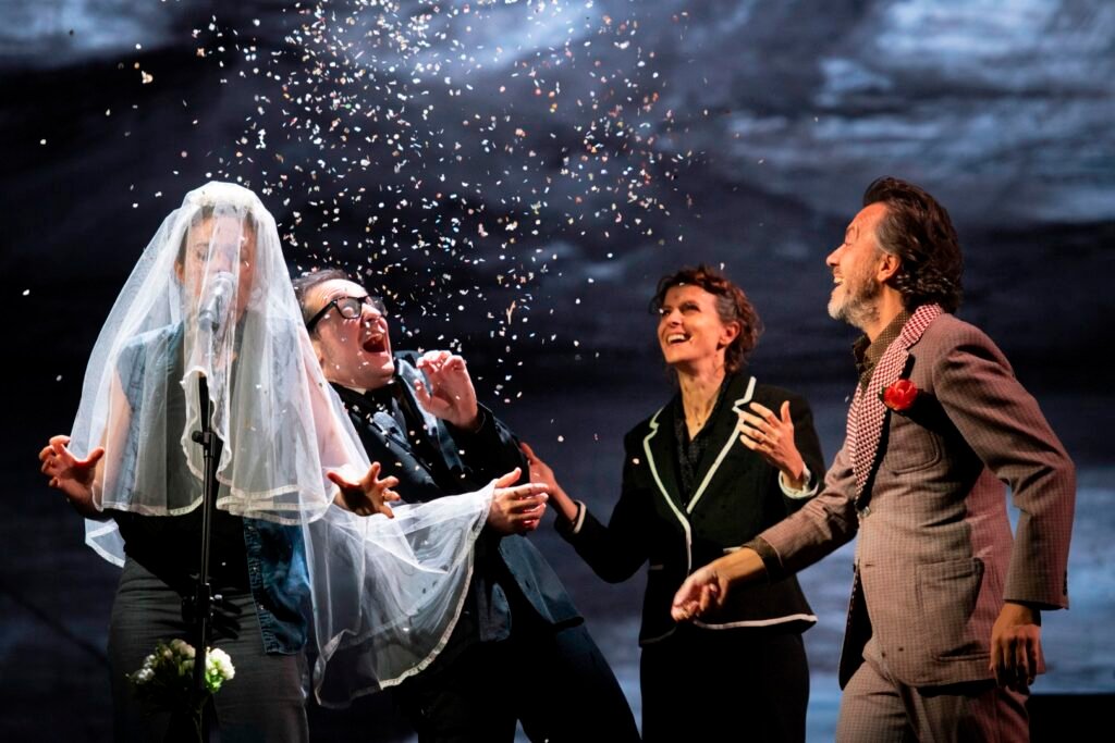 La scenografia, opera di Laura Benzi, mira a restituire invece l’atmosfera placida e malinconica tipica del paesaggio lacustre.