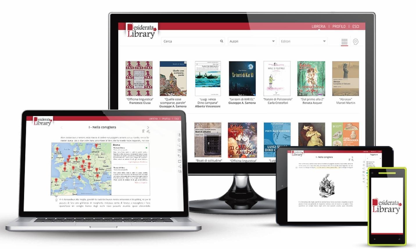 Desiderata Library è uno strumento a disposizione per tutti i lettori, sia che vogliano leggere in maniera tradizionale tramite smartphone, tablet, o eReader, sia che desiderino accedere a ulteriori contenuti e personalizzare l’esperienza di lettura, sviluppando collegamenti tra i testi, creando una propria sequenza di lettura, linkando ulteriori informazioni o aggiungendo commenti: in sintesi, componendo testi personalizzati, costruiti sui propri “desiderata”. La piattaforma supporta gli editori, con il coinvolgimento degli autori, nella pubblicazione di contenuti facilmente componibili e personalizzabili da parte dei lettori: con DesiderataLibrary infatti possono aumentare la quantità e la tipologia delle informazioni disponibili ed i contenuti digitali correlati al testo originale, aprendosi ad un mercato sempre più orientato al nativo digitale.