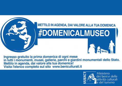 Domani, domenica 6 marzo, l’ingresso nei musei e nei siti archeologici statali sarà gratuito in concomitanza con l’iniziativa del MiBACT #DomenicalMuseo, introdotta dal Ministro Dario Franceschini, che prevede la gratuità di tutti i luoghi della cultura statali nella prima domenica di ogni mese.
