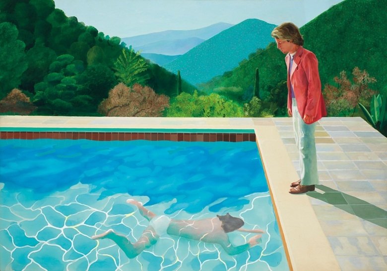 Lo stesso vale per Portrait of an Artist (Pool with Two Figures) realizzata nel 1972. Qui due persone condividono lo stesso spazio, ma non un legame. Uno nuota, l’altro osserva vestito, ma tra loro non c’è dialogo. Sono due mondi chiusi, paralleli, che non si toccano.