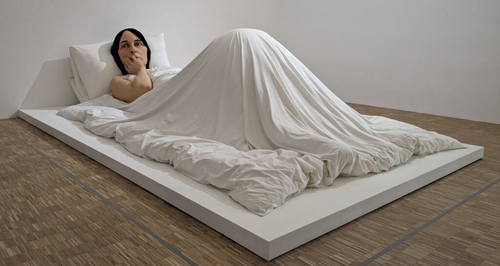 R. Mueck, In Bed, 2005, tecnica mista, 162 x 650 x 395 cm, Brisbane( Australia), Queensland Art Gallery. Fonte: www.fondationcartier.com © R. Mueck